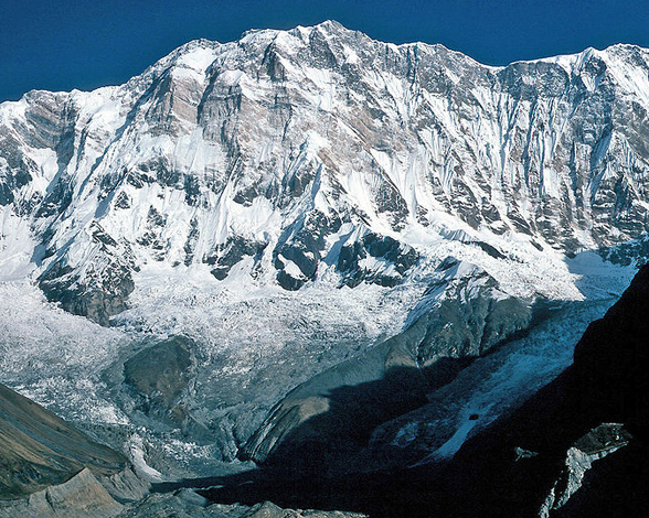 Este imponente macizo con su pico más alto, elevado 8.091 metros sobre el nivel del mar es la décima cima más alta del planeta. En el hinduismo, Annapurna es el nombre de la diosa de la comida y la cocina y su nombre se traduce como "diosa de las cosechas".