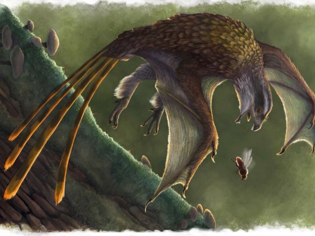 A mediados del período jurásico, la evolución ya comenzaba a hacer nuevos experimentos de vuelo. Uno de ellos fue el de los escansoriopterígidos, unos dinosaurios emplumados, con el hueso de la cola corto y cuatro plumas largas en su extremo, que tenían un par de alas realmente extrañas.