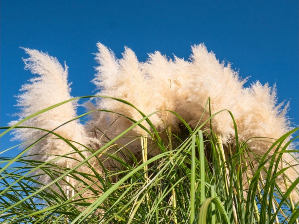 El plumero de la Pampa (Cortaderia selloana) es una herbácea procedente de Argentina que se comenzó a plantar como especie ornamental, por el atractivo de sus inflorescencias en forma de plumero blanco brillante. En sus hojas presenta unas diminutas agujas de sílice que la protege del ataque de los herbívoros. Si se maneja con las manos desnudas, puede provocar cortes en la piel.