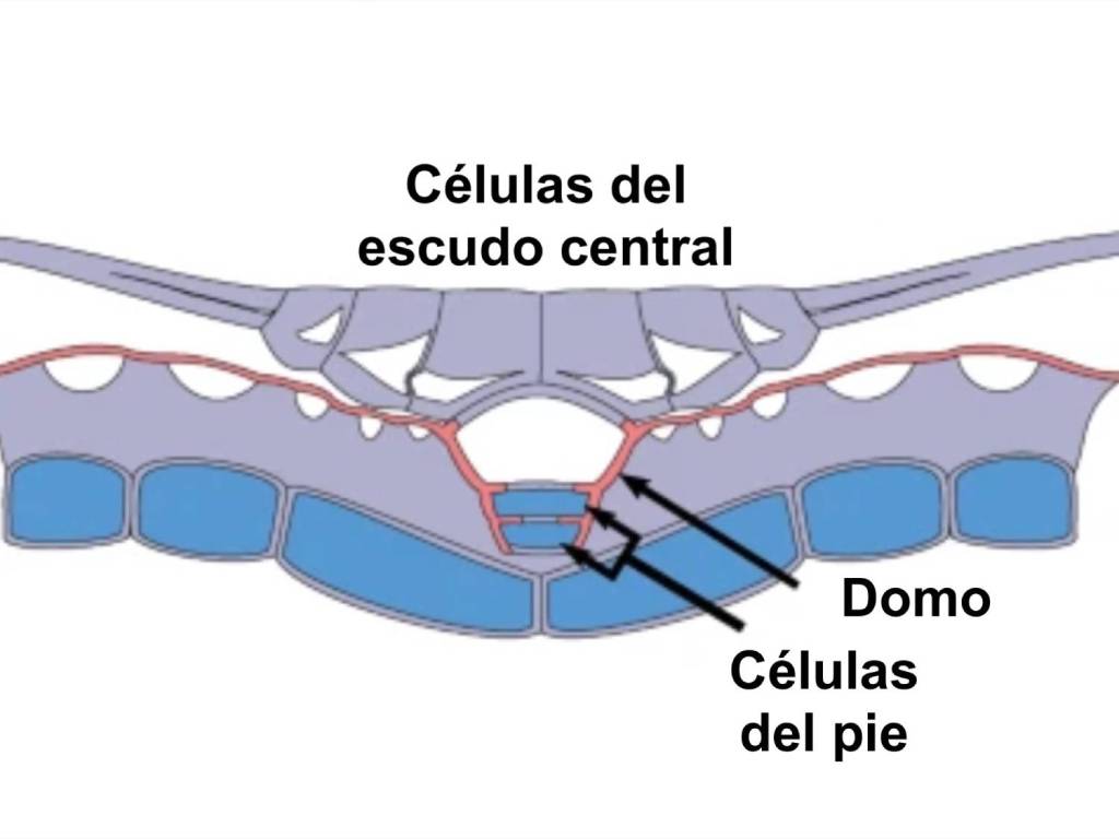 En presencia de humedad, unas células especiales del tricoma, llamadas células del domo, se hinchan, elevando una especie de tapón, llamado escudo central, y permitiendo el paso del agua al interior del estoma, a través de unas células permeables llamadas células del pie. Cuando el ambiente está seco, las células del domo se deshidratan, hundiendo el escudo central y cerrando e impermeabilizando así el estoma.