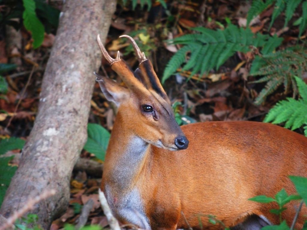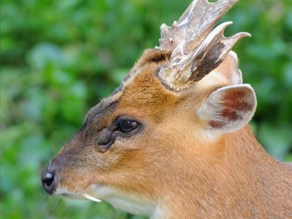 Aunque no todos. Hay un pequeño grupo de ciervos, nativos del sudeste asiático, que conserva los colmillos de sus ancestros: los muntíacos o ciervos ladradores.