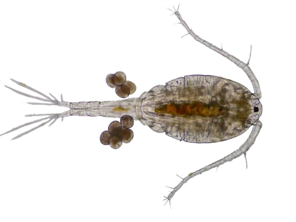 Otros crustáceos llamativos son los copépodos, de un tamaño similar a los cladóceros, aunque de forma más ahusada, y con un solo ojo. Este grupo de crustáceos son considerados los artrópodos más abundantes, y existen especies adaptadas prácticamente a todo tipo de ambientes acuáticos. Los copépodos pueden ser, también, intermediarios de parásitos que pueden afectar al ser humano, como el cestodo Diphyllobothrium latum, que provoca la difrilobotriosis, o la bacteria Vibrio cholerae, que produce la toxina del cólera.