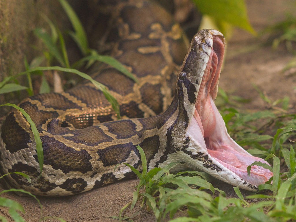 Las pitones birmanas (Python molorus bivittatus) no son precisamente pequeñas y es que pueden llegar a medir hasta 5 metros de largo. Sin embargo, su tamaño por sí solo no explica esa capacidad de abrir la boca hasta límites insospechados. Es capaz de tragarse ciervos y caimanes, presas hasta seis veces más grandes que las que ingieren serpientes de tamaño parecido.