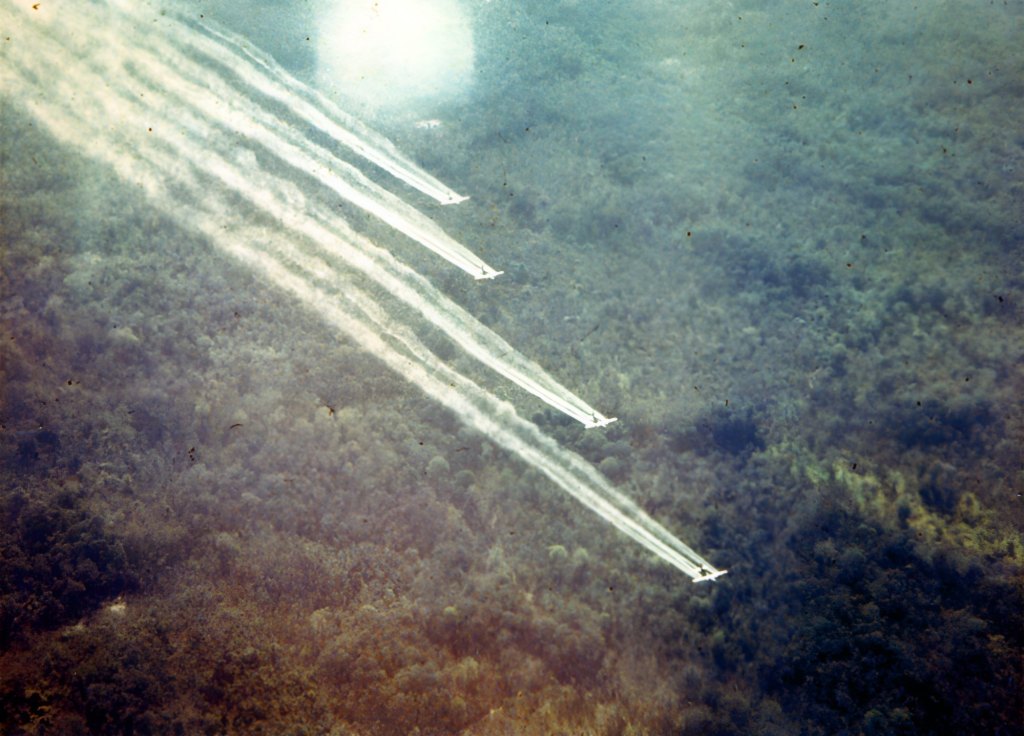 Uno de los casos mejor estudiados en este aspecto lo encontramos en la guerra de Vietnam, donde el ejército estadounidense, como parte de su programa de guerra química, roció amplias extensiones con hasta 76 millones de litros de agente naranja, una mezcla de dos herbicidas hormonales, una dioxina y combustible. Este acto, además de los daños a la salud de la población afectada, destruyó ecosistemas enteros.