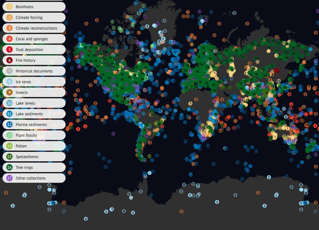 Para ello, el equipo multidisciplinar de Carbon Brief, liderado por Leo Hickman, ha creado un espectacular mapa interactivo global que aglutina datos procedentes de más de 10 000 estudios científicos y hasta 17 tipos distintos de proxy, entre los que se incluyen análisis de esponjas y corales, sedimentos marinos, fósiles, polen antiguo, deposiciones de polvo o testigos de hielo.