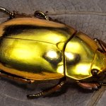 Pero tal vez, las especies más llamativas del género son aquellas que presentan todo el cuerpo con un brillo metálico característico: C. chrysargyrea es verde oscuro metálico; C. optima aún más oscuro, casi negro brillante, como un mineral de hematite; C. limbata, totalmente plateado; C. resplendens muy similar, aunque más amarillento. Y por supuesto, el escarabajo que encabeza este artículo, Chrysina aurigans, que parece estar hecho del oro más fino.