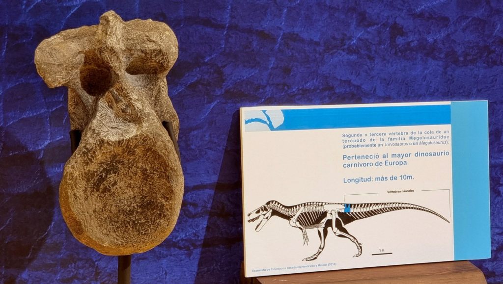 Según los investigadores, esta vértebra probablemente representa el mayor terópodo registrado hasta ahora de toda Europa, un superdepredador de más de 10 metros de longitud, que caminaba por las costas asturianas. De hecho, aunque no es posible establecer claramente una conexión entre el fósil de una huella y de un hueso —no se puede saber si el animal que dejó la huella era el dueño de ese hueso—, en yacimientos de la misma época también se han encontrado icnitas de terópodos gigantes; las más grandes del mundo.