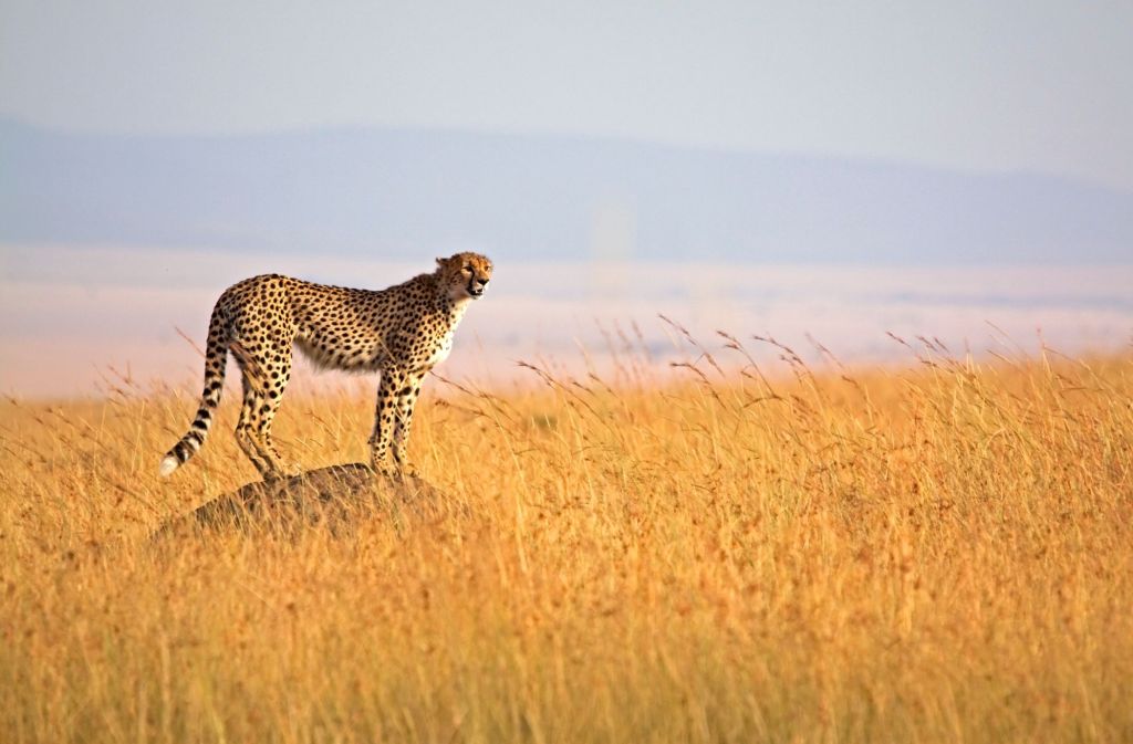 Otra adaptación clave es su cola larga y musculosa, que funciona como un timón, ayudando al guepardo a mantener el equilibrio y cambiar de dirección rápidamente mientras persigue a sus presas. Estas características hacen del guepardo un depredador excepcionalmente eficiente en campos abiertos, donde puede desplegar toda su velocidad sin obstáculos.