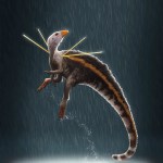 Pero lo realmente llamativo de esta criatura está en sus hombros. Hacia cada lado se proyectan un par de espinas largas y reforzadas, de 15 cm de longitud. Cuatro estructuras dorsales que justifican el nombre de este pequeño dinosaurio, que en idioma tupí significa ‘señor de las lanzas’.