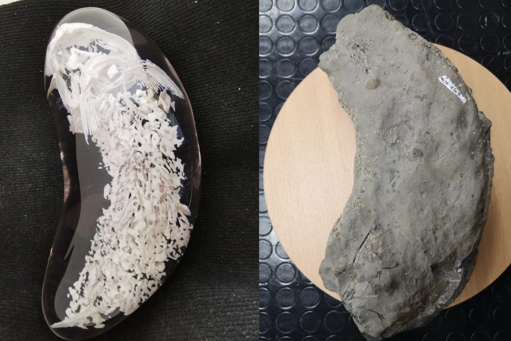 Actualmente, la impresión en 3D se emplea en estudios de paleontología de forma cada vez más frecuente. El último caso, en España, es la impresión del fósil de un pez hallado en la Playa de la Griega, de la Costa de los Dinosaurio, que se encuentra en el interior de un nódulo de roca y cuya extracción pone en riesgo la integridad de los restos. El Museo Jurásico de Asturias ha escaneado el nódulo mediante tomografía axial computerizada y recientemente ha impreso la pieza en 3D. El pez, aun sin nombre, y ahora en estudio, mide 38 centímetros de longitud, y está casi completo, excepto por su aleta caudal ausente.