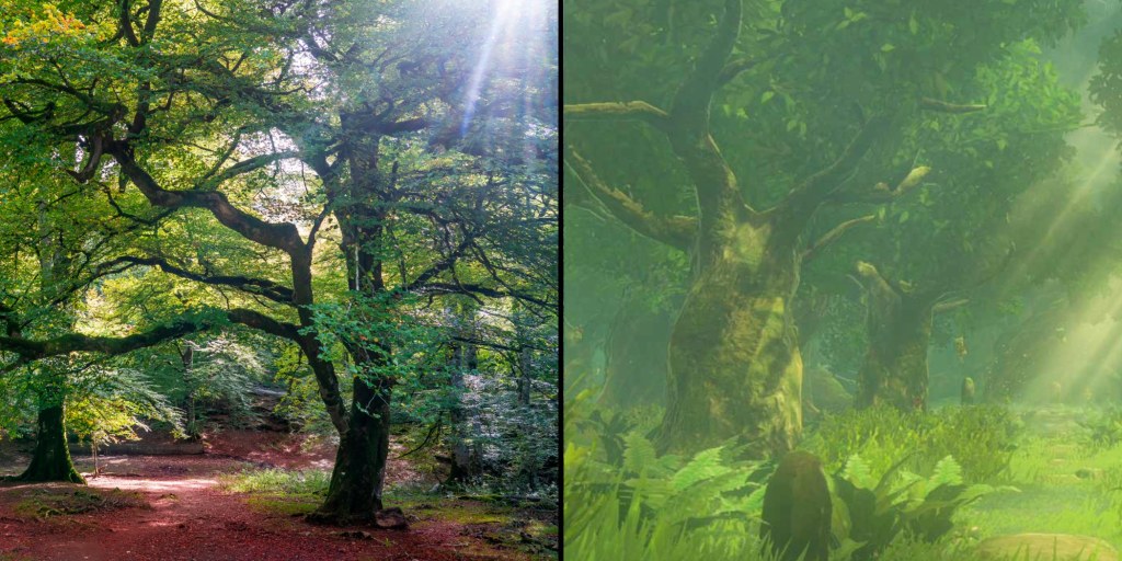 El reino de Hyrule, —así se llama la región del videojuego—, cuenta con una gran diversidad de ecosistemas. Al inicio del juego, tras la parte introductoria, lo habitual son las praderas, dominadas por plantas herbáceas y algún árbol aislado. Pero, basta con adentrarse más allá para encontrar escarpadas montañas y acantilados, y aún más lejos, áreas con biomas de lo más variado, desde tundras gélidas cubiertas de nieve —donde más vale ir bien abrigado—, hasta desiertos áridos de temperaturas extremas. Cada uno, con sus plantas y animales.