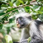 En el bosque de Jozani habita el colobo rojo, una especie de primates en extinción que tiene una corona de pelo blanco, marcas rosas en la nariz y una larga cola roja no prensil, que emplea exclusivamente para mantener el equilibrio.