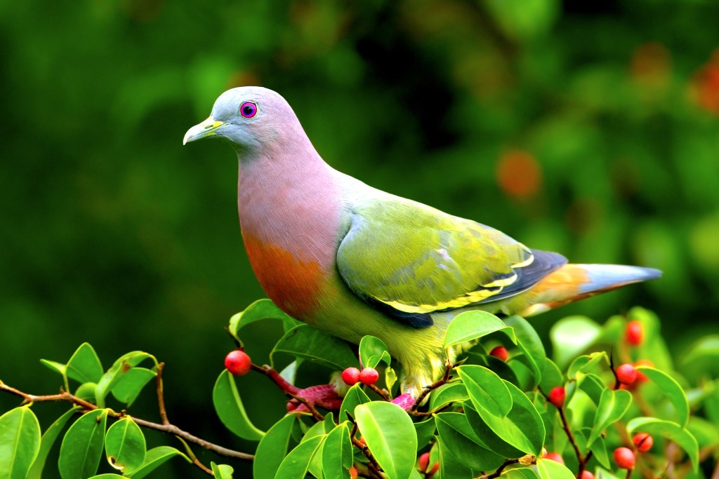 En los bosques del Sudeste Asiático habita una paloma que, por su colorido, despierta la curiosidad de todo el que la ve. Su nombre común más aceptado es el vinago cuellirrosa (Treron vernans), aunque con frecuencia recibe el calificativo de paloma arcoíris, y solo con ver una fotografía, es fácil conocer el motivo.