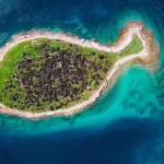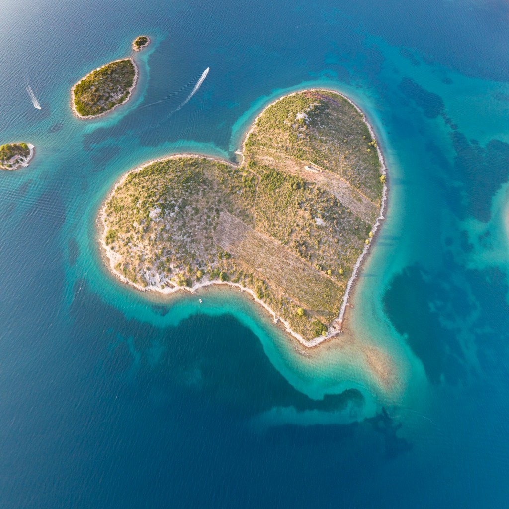 Suelen ser muy populares cuando llega el día de los enamorados, el 14 de febrero. La NASA no ha perdido la ocasión de captar desde el espacio cómo se ven este tipo de islas para deleite de los internautas. Un buen ejemplo de este tipo es la isla Galešnjak en Croacia, también conocida como Isla de los Amantes o simplemente isla del corazón. Su extraña forma de corazón, apreciable perfectamente a vista de satélite, han convertido este lugar en un rincón ideal para escapadas románticas y la fotografía aérea. ¿Y esta forma tan particular? Como hemos comentado al principio, se trata de un fenómeno natural, producto de la costa rocosa de la isla y del flujo y reflujo del mar a su alrededor que le han dado la imborrable y romántica forma a esta isla del mar Adriático.