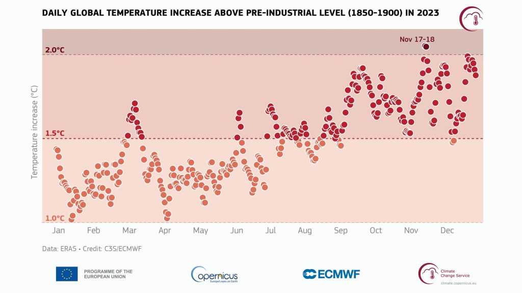 - Copernicus Climate Change Service. 2024. Copernicus: 2023 is the hottest year on record, with global temperatures close to the 1.5°C limit.