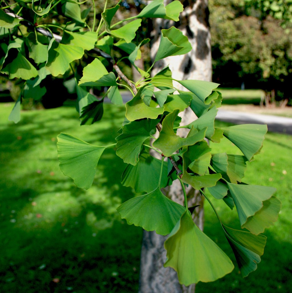 Originario de China, Ginkgo biloba es un superviviente de un pequeño valle en este país, donde ha persistido durante eones. Considerado como árbol sagrado para la cultura china, sus hojas en forma de abanico y únicas en el reino vegetal, son símbolo de longevidad y resistencia, y se le atribuyen propiedades medicinales —que no han sido científicamente comprobadas—.