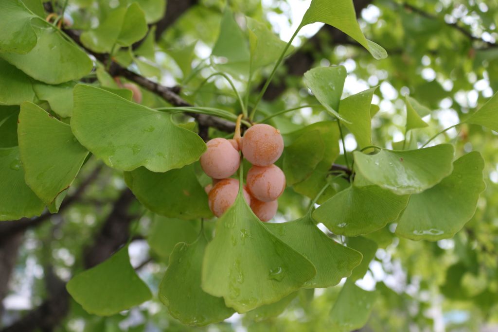 Ginkgo biloba es un árbol dioico, con árboles machos y hembras separados —como el kiwi o el pistacho–. El árbol macho produce granos de polen y, como es habitual, son transferidos a su destino, en este caso, por el viento. Pero los puntos en común con cualquier otra planta terminan aquí.