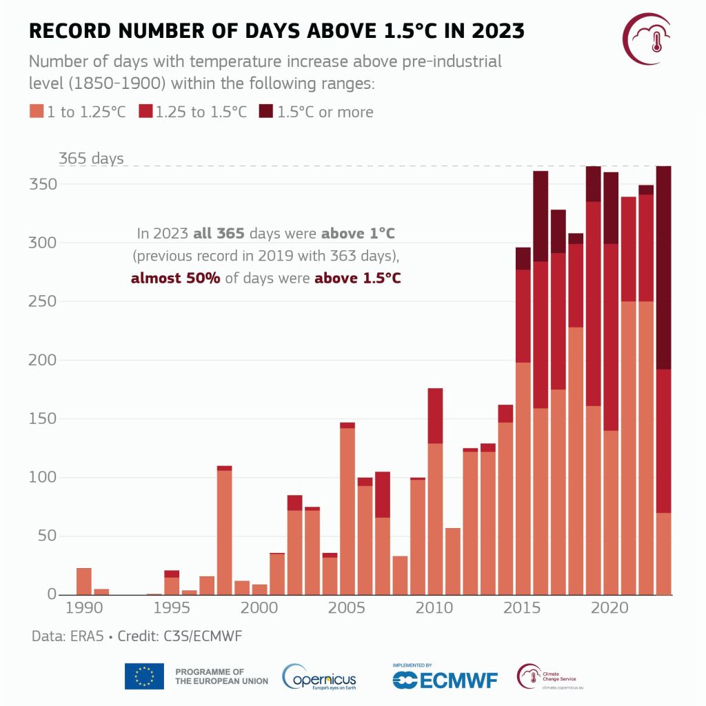 Ya hace algún tiempo que se asumió que evitar el límite de 1,5 °C es inviable. Después de sufrir el mes de julio más caluroso de la historia conocida en 2023, y de septiembre a diciembre, los meses con mayor anomalía térmica desde que existen registros —dos días de noviembre superaron los 2 °C de anomalía—, el año 2023 se cerró con una media de 1,46 °C sobre los niveles preindustriales, dejando el límite del Acuerdo de París a ser superado en nueve años o menos. Pero tal vez, estos datos, incluso, son optimistas.