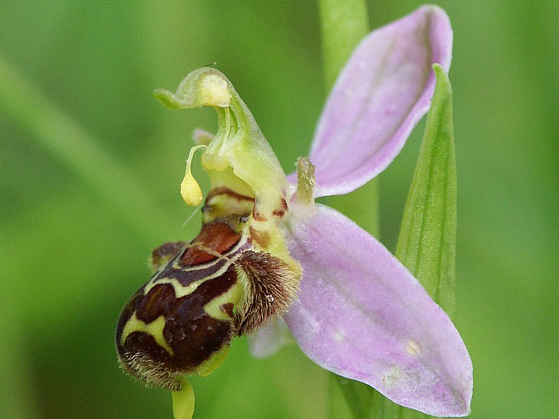 Tal y como su nombre y aspecto indican, esta es una de esas orquídeas que se sirven del arte del camuflaje para hacerse pasar por un insecto, en ese caso una abeja, y atraer a los machos.