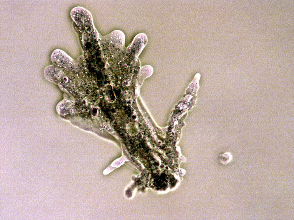 Las amebas son organismos unicelulares que no tienen una forma definida. Cuando se exponen a ambientes potencialmente letales para la célula, pueden permanecer en estado latente mediante su transformación en una bola y secreción de una membrana protectora para convertirse en un quiste microbiano. La célula permanece en este estado hasta que detecta condiciones más favorables. De esta forma, las amebas pueden soportar hasta 1.000 Gy. Otra ventaja podría ser su capacidad para reproducirse asexualmente.