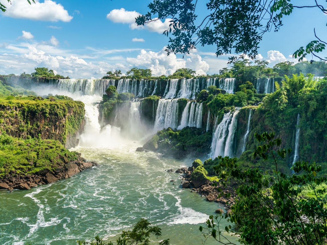 Estas espectaculares cataratas consisten en un sistema de más de 200 saltos de agua en el río Iguazú. Las más famosas son el conjunto que comprende la Garganta del diablo, con saltos de 80 metros de altura y consideradas las más caudalosas del mundo.
