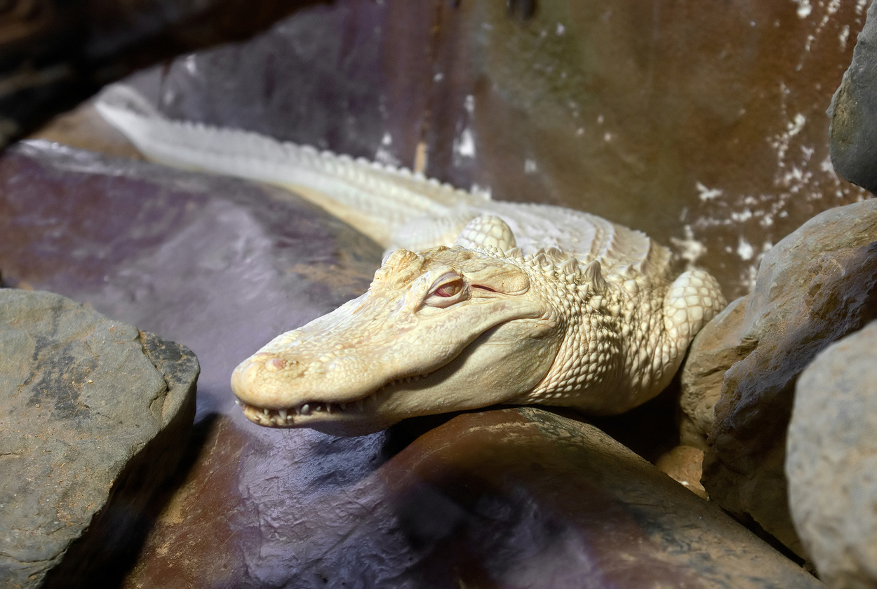 Los cocodrilos albinos son muy raros en la naturaleza y no suelen sobrevivir. Esto se debe a que su delicada piel puede quemarse fácilmente con el sol. Además, su color claro les complica acercarse a sus presas. Sin embargo, pueden prosperar en cautiverio, donde reciben una alimentación adecuada y están en la sombra.