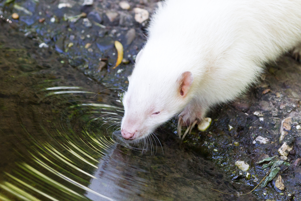 Aunque las mofetas albinas pueden parecer adorables, desprenden el mismo olor fétido de sus glándulas anales cuando se sienten amenazadas. Además, su pelaje es totalmente blanco y sus ojos de color rojizo.