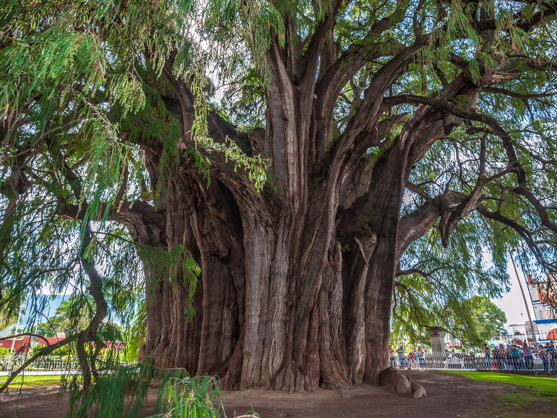 El Árbol del Tule es el que tiene el tronco más ancho del mundo: 14,05 m de diámetro. Se encuentra en el municipio oaxaqueño de Santa María del Tule y se calcula que tiene nada más y nada menos que 2000 años. En la sombra de este magnífico árbol caben aproximadamente 500 personas.