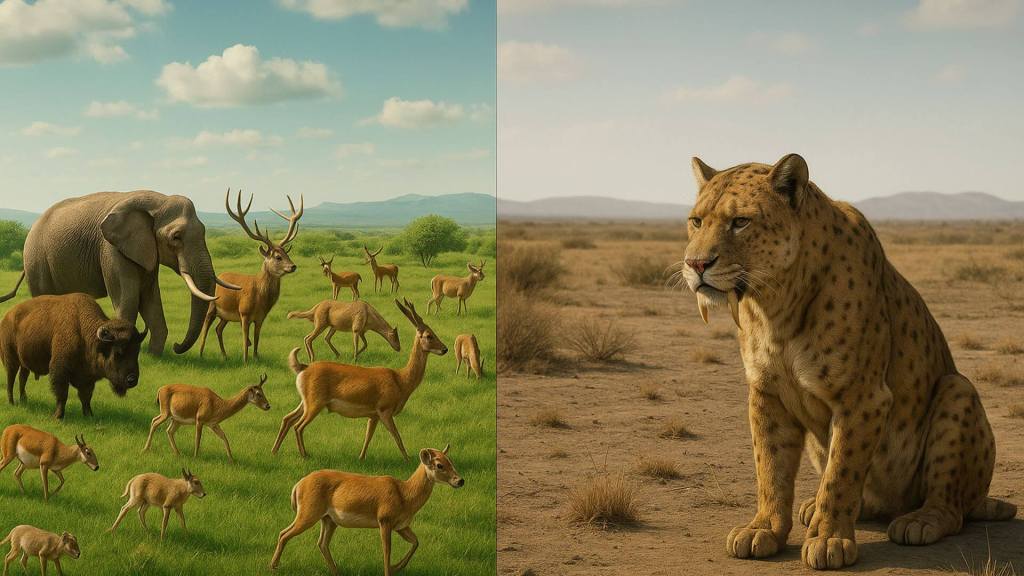 Los científicos también estudiaron cómo los cambios en el clima y la vegetación alteraron la disponibilidad de alimento para los felinos. Hace unos seis millones de años, el clima se volvió más árido y los bosques comenzaron a ceder terreno a las praderas abiertas. Este cambio favoreció a los rumiantes, pero perjudicó gravemente a los herbívoros que se alimentaban de hojas, como los Merycodontinae.