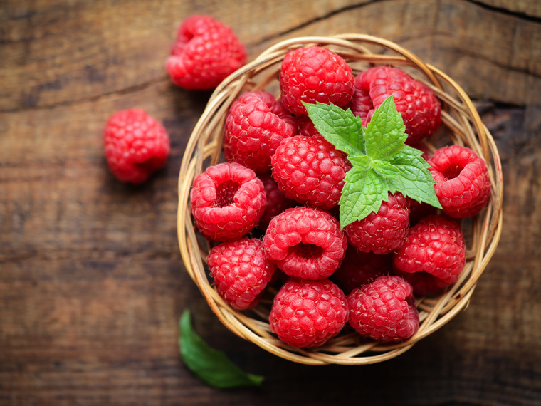 Frutas y verduras contienen grandes cantidades de fibra. En concreto, las frambuesas aportan hasta 8 gramos de fibra por taza, además de 186 mg de potasio (para una presión arterial saludable), 31 mg de calcio (salud de los huesos) y 167 mg de luteína y zeaxantina (protegen contra la degeneración macular). Así que además de su excelente sabor, las frambuesas aportan muchos beneficios a la salud.