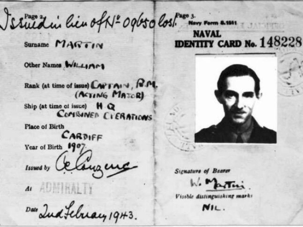 Para dar veracidad a la operación Carne Picada se había disfrazado al joven de oficial del ejército británico y se le había creado una identidad falsa, con documentación personal que llevaba consigo –con una carta de su novia Pamela incluida-. El cuerpo sin vida fue trasladado al estrecho de Gibraltar en un submarino británico HMS Seraph y depositado cerca de las costas onubenses.