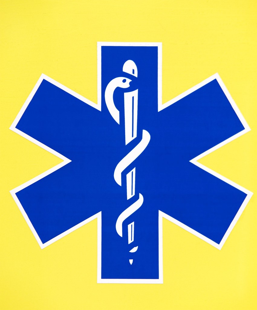La estrella de la vida es otro símbolo médico ampliamente reconocido, sobre todo en el contexto de los servicios de emergencia. Este emblema, que adorna las ambulancias en muchos países, consiste en una estrella de seis puntas de color azul con un borde blanco, en cuyo centro se encuentra el bastón de Asclepio. Cada punta de la estrella representa una de las acciones críticas que deben realizar los equipos de emergencia: detectar, alertar, responder, proporcionar cuidados in situ, cuidados durante el transporte y transporte a cuidados definitivos.
