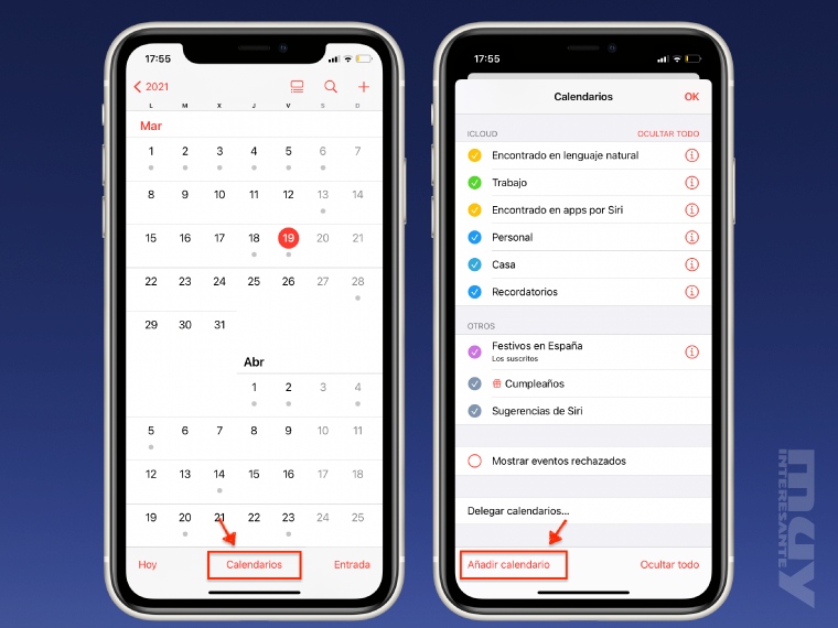El proceso para crear un nuevo calendario dentro de la app Calendario es en realidad muy simple, aunque los pasos difieren ligeramente en función de si te encuentras utilizando la aplicación en un iPhone (o un iPad), o en una Mac.