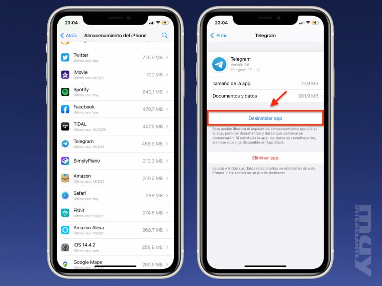 Desinstalando una app en iOS