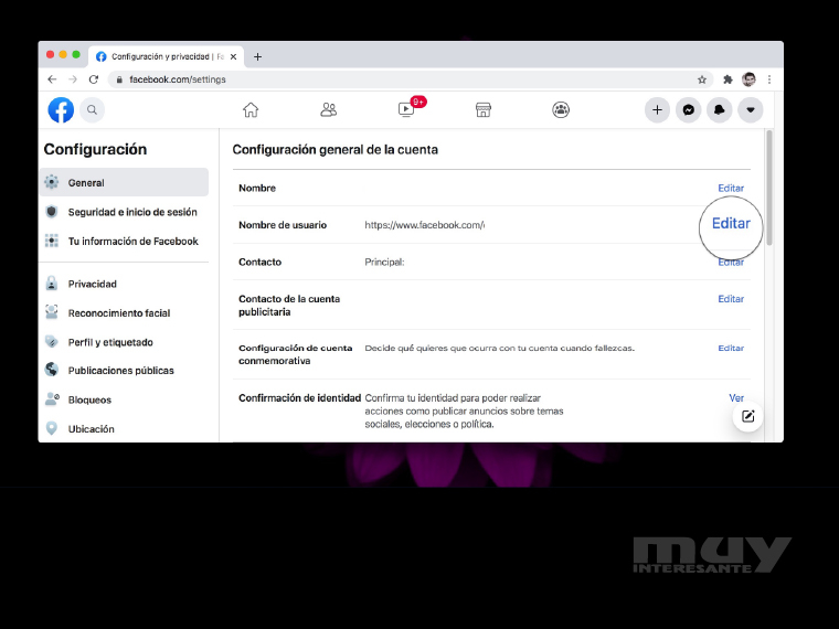 Cambiando nuestro nombre de usuario a través del sitio web de escritorio de Facebook
