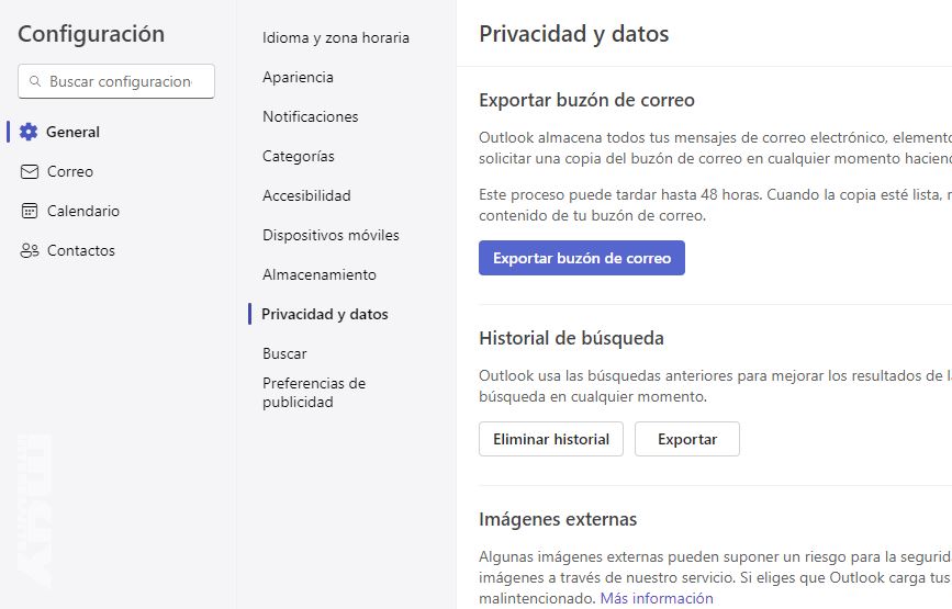 Exportación del buzón