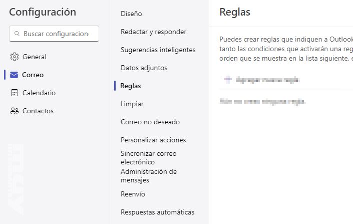 • Busca la opción de reenvío: Generalmente se encuentra en la sección de manejo de correos, tal y como muestra la captura superior.