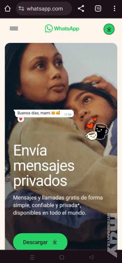 - Accede a WhatsApp Web: Abre el navegador en tu móvil y visita web.whatsapp.com. La página te redirigirá a la versión móvil que sugiere descargar la app.