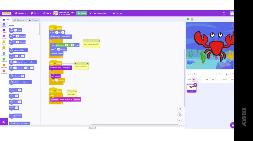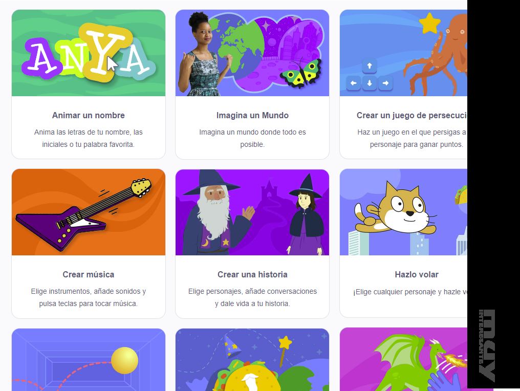 • Animaciones de historias: crear una historia corta donde los personajes (sprites) interactúan. Esto enseña secuenciación y narrativa.